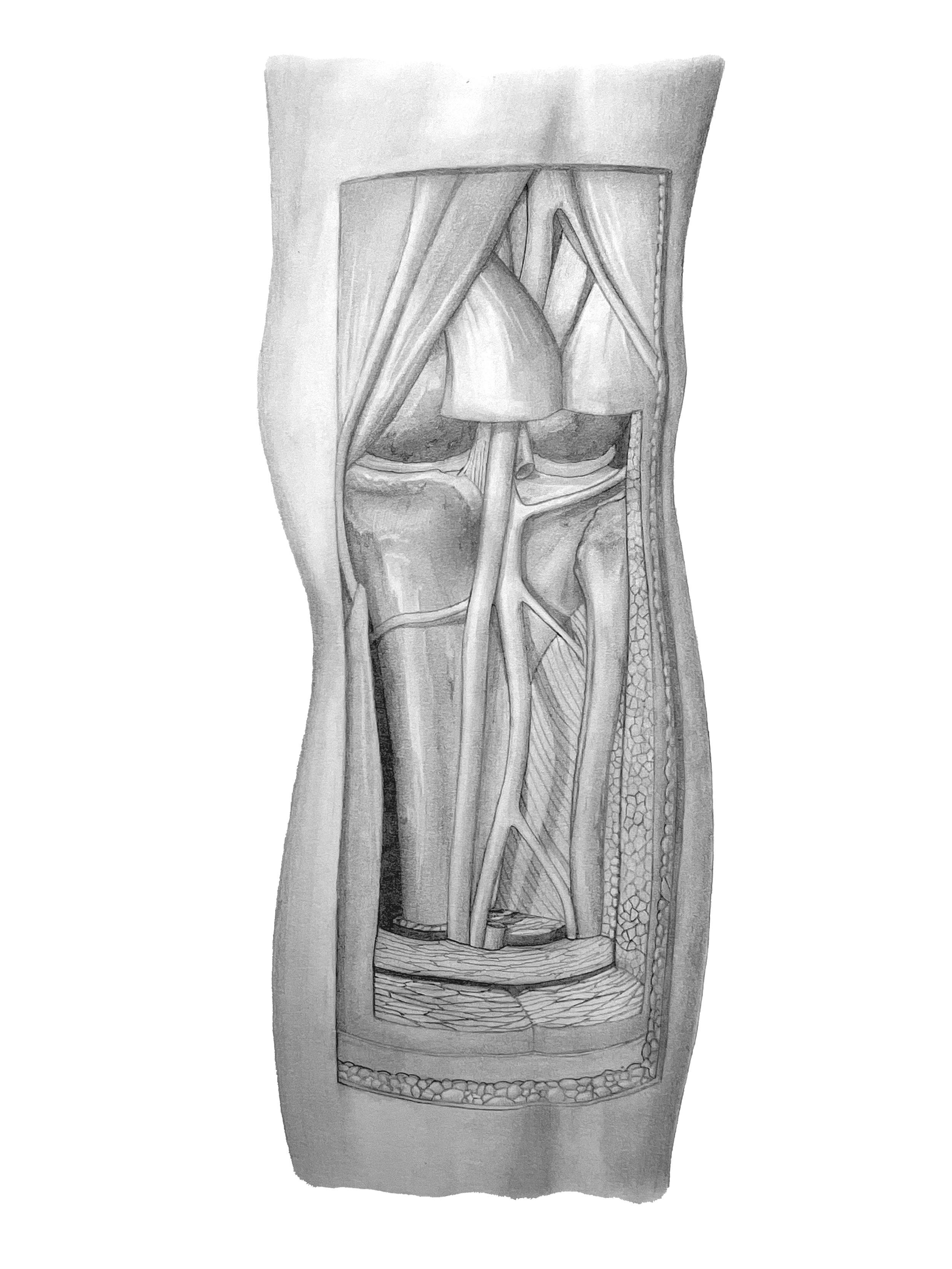 Produce a full colour, realistic rendering of a cutaway view of an anatomical structure