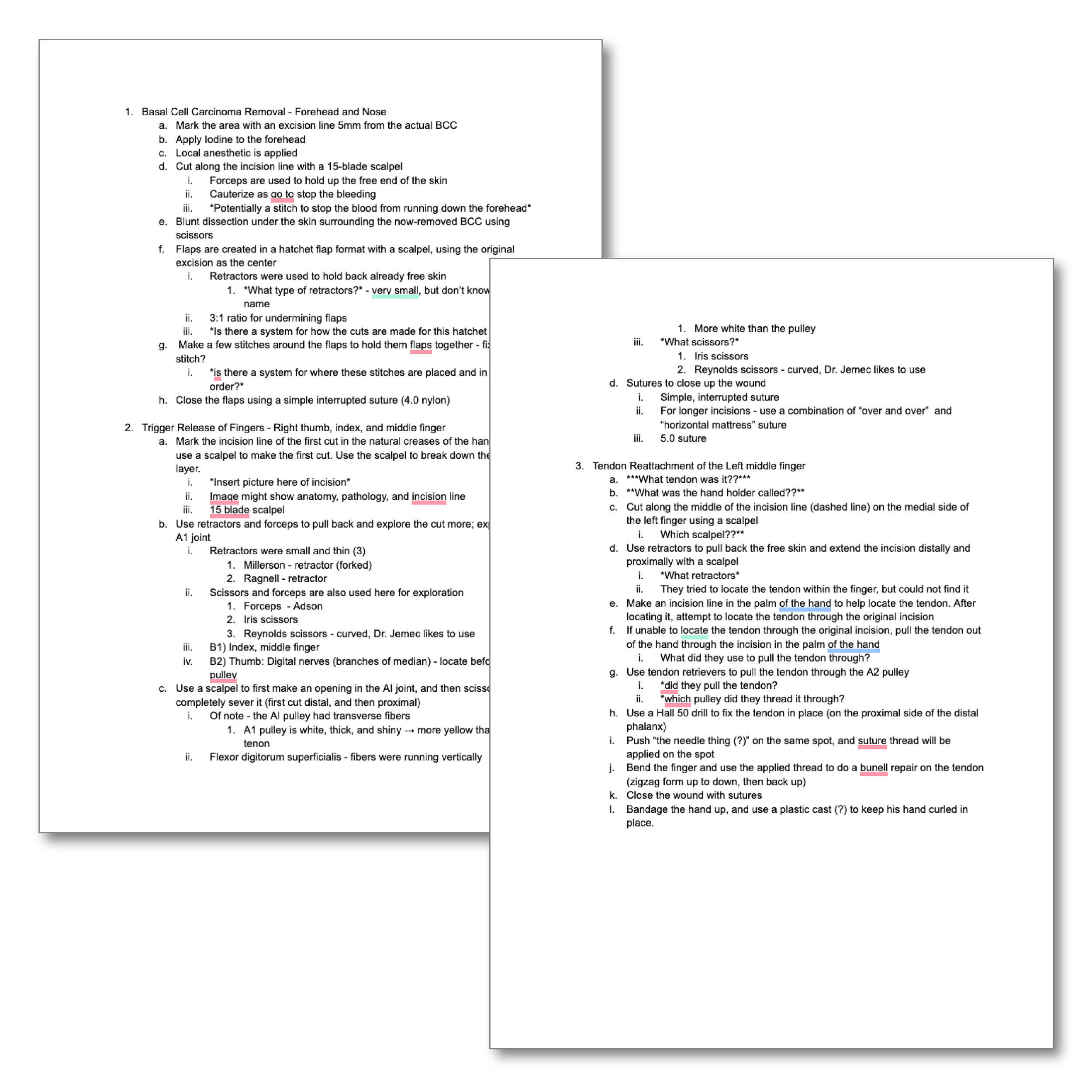 Create a narrative that accurately communicates a surgery as it was witnessed in the OR, and that could be used as teaching materials.
